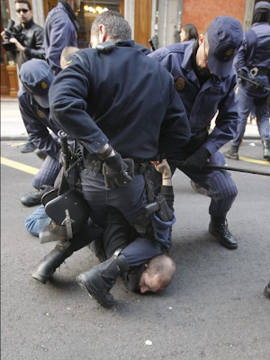 Luego dicen que porqué se encendian contenedores y se crean barricadas para defenderse de estos maderos de mierda cuya única respuesta a la libertad de expresión y a los derechos de los obreros es la hostia y la sangre.